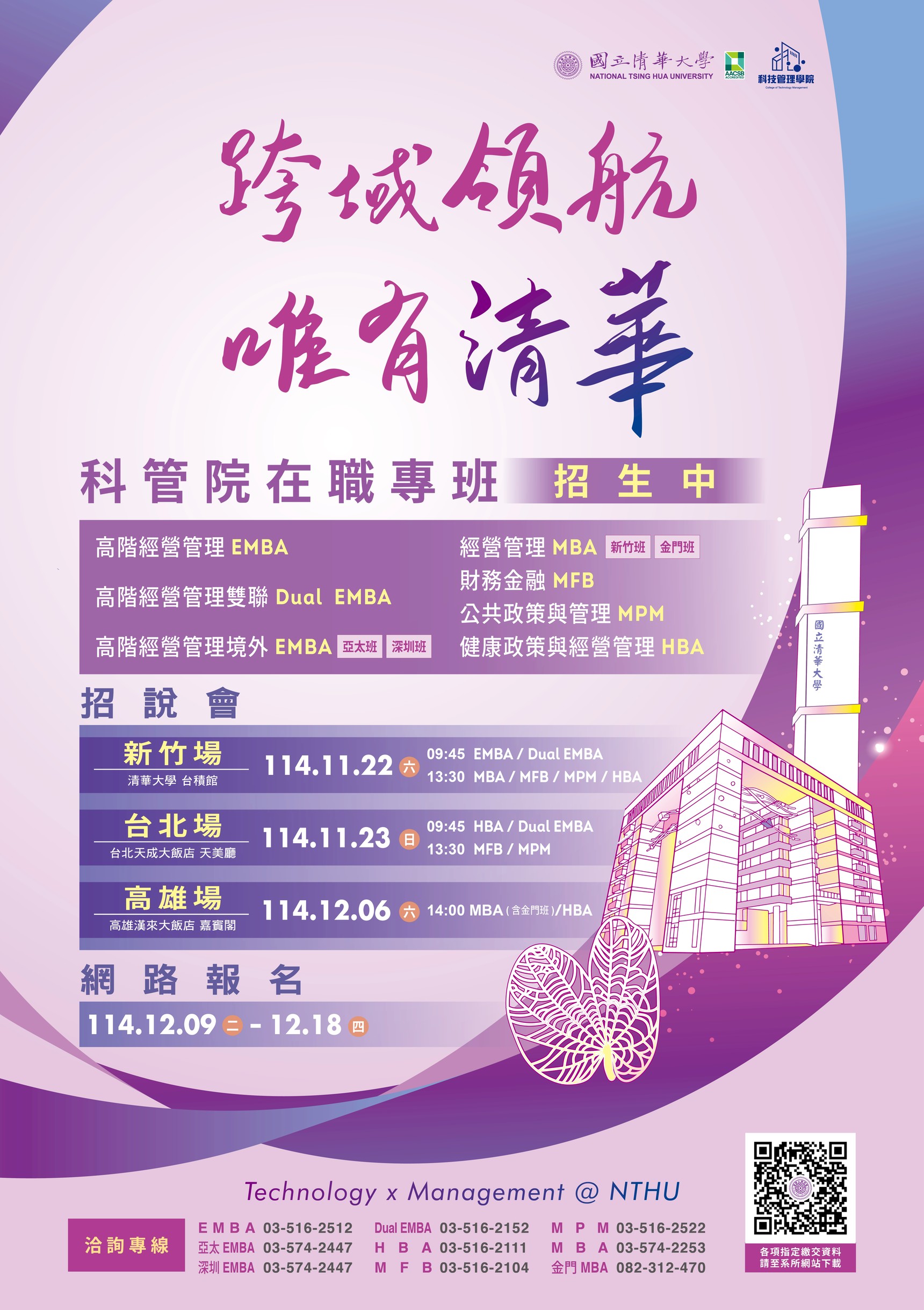 2025-10-16【公告】招生說明會 (2025.11.22-23 新竹/台北場次) Information Session of NTHU-UTA Dual EMBA on Nov. 22-23, 2025